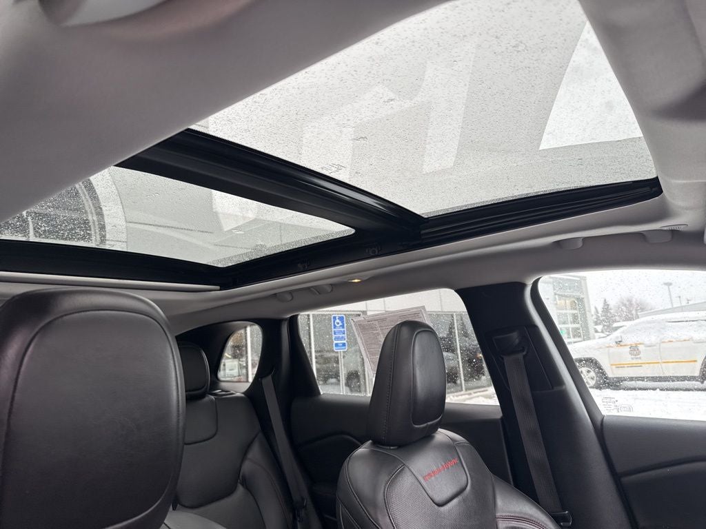 Inside, the Cherokee Trailhawk is packed with premium amenities that will elevate your driving experience. Enjoy the convenience of a Hands-Free Power Liftgate, Remote Start System, and Heated Steering Wheel. Stay connected with the 8.4 Touchscreen Display, Apple CarPlay, and Android Auto. And with the Leather-Wrapped Steering Wheel, Heated and Ventilated Front Seats, and Premium Leather-Trimmed Bucket Seats, you'll ride in absolute comfort.